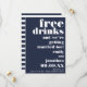A funny bold typographical design to invite your guests to save your wedding date. Fully customisable. The typography is all aligned to the right, with white typography at the top, Free Drinks, followed by And We’re Getting Married Too in white, with your names, wedding date and location in a mix of gold and white. A navy and white stripe background is on the back.