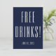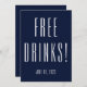Funny navy blue and white graduation party invitation card with Free Drinks and a date on the front and Oh, and By the Way, (name) Graduated! on the back. Pretty script on the back for Graduation Party and graduate's name. Personalise with party details. Send it out and have people come and celebrate your big accomplishment! See coordinating items in our shop, Enchanted Finch.