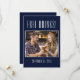 Funny navy blue and white Save the Date card with Free Drinks, photo and date on the front and Oh, and By the Way, We are Getting Married! with save the date details on the back. Personalise with names in script and city, state and your special wedding date to make sure people are ready to celebrate with you!