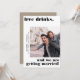 Funny "free drinks and we are getting married" Save the Date Card. Add your custom wording to this design by using the "Edit this design template" boxes on the right-hand side of the item, or click the blue "Customise it" button to arrange the text, change the fonts and colours, and to also add additional information or images to this design. Click "Customise Further" to open up full editing options. Contact us for more options and matching items.