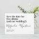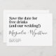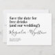 Let your friends and family know that you've set a date with this funny save the date card - the text reads "Save the date for free drinks (and our wedding!)"