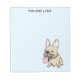 French Bulldog Lover's Notepad. Fawn coloured light tan cartoon French Bulldog with huge tongue. Text can be personalised. Cute paper notepad for work, to-do lists, school, and grocery lists. Makes a cool little gift for a friend for family member who loves Frenchies. Available in more paper colours. Visit Jenn’s Doodle World for many more dog breed cartoons and fun gifts for animal lovers.
