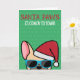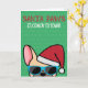 If you know someone who loves french bulldogs and has a good sense of humour, this funny frenchie Christmas card is ideal for sending to them during the festive holiday. The design features a cartoon-style illustration of a light fawn coloured french bulldog wearing a red Santa hat and sunglasses with the wording “Santa Paws is comin’ to town" written on the front. Wording on the inside reads "Wishing you a pawsome Christmas” but can be changed to your liking. This design is also available with different coloured french bulldogs.