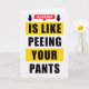 Funny friendship saying and card for a friend who has a sense of humor with a silly message of, "Friendship is like peeing your pants. Everyone can see it, but only you can feel the warm feeling inside."