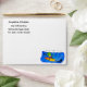 Funny frilled neck lizard surfing cartoon envelope