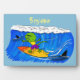Our funny lizard surfing with sharks. Add your own text to make it special.