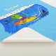 Our funny lizard surfing with sharks. Add your own text to make it special.