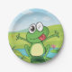 A funny green frog with big eyes and its tongue out. This design looks really effective on these Paper Plates