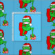 A funny cartoon frog who looks pretty grumpy. The green frog is standing up, as if human. The frog is wearing a red Santa Hat and is carrying a sack of presents. You can customise this with your own text and background colours.