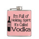 Funny flask says in black letters "I'm Full of Holiday Spirit It's Called Vodka" and has a vodka bottle in black and pink. You can customise this by changing the background colour to whatever you like Makes a funny holiday gift! Go ahead and put a SMILE on their face!