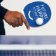 Crack up the competition in ping pong with this funny table tennis paddle, which features the dubious job title of "Future Happy Scientist" rendered in an optical character recognition typeface (with a taunt in smaller text). A great gag gift idea for those contemplating a career in the STEM fields!