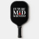 Crack up the competition in pickleball with this funny pickleball paddle, which features the dubious job title of "Future Mad Scientist" with an Erlenmeyer flask / beaker of unknown liquid standing in for the 'A' in mad. A great gag gift idea for those contemplating a career in the STEM fields! Reverse shows identical design.