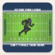 Don't let your guests fumble their drinks! This witty Football Field Game Day Coaster Set is a must-have accessory for any serious sports fan's tailgating party or game-watching event. This coaster features a sharp, bold design centred on a classic green football field graphic with yard lines. The colour scheme utilises a deep navy blue border and accents with grey detailing, fitting many popular team colours. The hilarious and memorable slogans "SECURE YOUR LIQUID" and "DON'T FUMBLE YOUR DRINK" frame the design. A dynamic running player silhouette holding a football is centred on the field, bringing the game action to your table. This set of six coasters makes a great home bar or living room addition. The text is fully editable, allowing you to easily swap the top and bottom slogans for a team motto, a family name, or your own funny one-liner! Protect your surfaces in style and show your team spirit. Click "Personalise" to make this unique drink accessory perfect for your next big game!