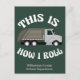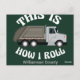This funny postcard for a refuse truck driver features a grey garbage truck inside the hilarious phrase This is How I Roll. A cool pop culture reference for a trash truck driver who likes modern humour. Cute personalised postcards for garbage vehicle drivers with their custom text.
