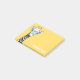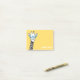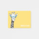 Personalised funny post-it notes featuring a bright yellow background that can be changed to any colour, a quirky geek giraffe with blue glasses, and your name.