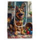 Funny German Shepherd Tangled in Christmas Lights Medium Gift Bag