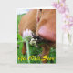 Dog sniffing a bee photo customizable greetings card. Front text reads "Get Well Soon". Text can be customized.