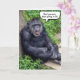 Chimpanzee leaning on a rock with green vegetation for getting older birthday.