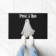 Doormat Welcome Door Mat with customisable text template Peek A Boo typography and printed with a Funny Ghost Of Halloween Past Drawing hand drawn graphic art design artwork illustration by TheFabricSeal print on demand shop at Zazzle.com #ZazzleMade ©️Original. https://www.zazzle.com/store/thefabricseal