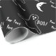 This image of a funny halloween ghost shouting boo! accompanies a happy smiling half moon. The pair of white Halloween images look great against the black background of this quality Halloween gift wrapping paper, I’m sure anyone who receives a Halloween gift wrapped in this cool and funny Halloween gift wrap will be pleasantly surprised. This is customisable spooky wrapping paper, you can personalise it with your own text.