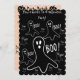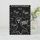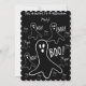 This customisable halloween party invitation has an outline picture of a funny ghost shouting boo! this cute white ghost looks great against the black background of these quality invitations. The little ghost has a look of shock on his face but I’m sure anyone who receives this invitation for a Halloween party will be pleasantly surprised. These funny ghost invitations are customisable, you can personalise them with your own text.