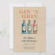 A funny 30th birthday party invitation template for women featuring a watercolor painting of three bottles of gin and the title "Gin 'n' Grin". The whole design is a play on a gin bottle label. A humourous 30th birthday invite for a woman on her thirtieth birthday celebrating with a cocktails hour birthday, a cocktails party... or perhaps someone whose favourite cocktail includes gin.
