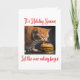 This funny Christmas card features a fat ginger cat bingeing on a tasty burger during the Christmas Holiday period. It is a hilarious card with the words" It's Holiday Season Let the over eating begin". The inside of the card can be personalised with your name and message. Currently, the message poem reads "We hear the bells on Christmas Day, the old familiar carols play. Silent Night and Deck the Halls. Send peace on earth, goodwill to all.
