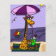 Wonderful funny artistic giraffe sipping a tropical drink and wearing a purple sunhat at the beach original art design makes a fun gift. Can also add custom text when ordering.