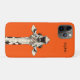 Humorous illustration of a giraffe with an expressive open-mouthed pose against a vivid orange background. This playful iPhone case combines bold color with animal charm, perfect for adding personality and fun to your phone while keeping it protected.