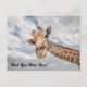 Funny image of a giraffe sticking out his long neck with the message "wish you were here".