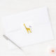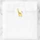 Cute sticker with a funny cartoon giraffe nibbling on a violet flower and smiling.