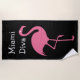 Funny ladies with girls beach towel for the fashion diva with image of a pretty pink flamingo and the words Miami Diva you can replace with your own City, girl's name, or your own message. A funny beach towel with tropical Florida or Hawaiin Flair.