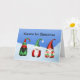 This playful Christmas card features three gnomes with different funny faces and festive holiday hats against a background of blue sky and snow. The phrase "Gnome for Christmas" appears on the front, with "Wishing You a Merry Christmas and a Happy New Year" on the inside. You can edit the text in the Personalise section, or if you want or customise the card further, you can add your own text.