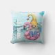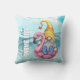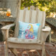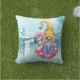This funny outdoor pillow features a gnome sitting on a pink flamingo float in the water at the beach. The quote which may be personalised reads "Lovin' the Gnome Life". Designed by Susan Coffey.