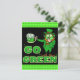 This funny drunk leprechaun has gone "green" for Saint Patrick's Day. He's holding a large mug of green beer and putting his hand over his mouth because he's feeling sick /queasy and might be about to vomit. That's what he gets for engaging in such shenanigans. The "Go Green" letters are big with a few little vines/ shamrocks coming off them. This would make a humourous gift for anyone who wants to send a lucky green postcard for St Paddy's Day.
