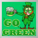 This funny drunk leprechaun has gone "green" for Saint Patrick's Day. He's holding a large mug of green beer and putting his hand over his mouth because he's feeling sick /queasy and might be about to vomit. That's what he gets for engaging in such shenanigans. The "Go Green" letters are big with a few little vines/ shamrocks coming off them. This would make a humourous poster for a St Paddy's party, for anyone who needs a lucky green decoration.
