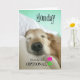 This greeting card features a photograph of a cute golden retriever dog who is asleep on a pillow. Funny quote reads, "Monday should be optional."