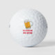 Novelty golf balls with funny saying that says No Drinking And Driving, along with graphic image of a glass beer mug filled with beer. Both a funny and serious public safety message for the golfer who already has everything. Designed for male or female golfers or golf fanatics.