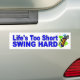 Great gift for your favourite golfer. This funny car sticker has a cartoon of a golf bag and clubs, with the words Life's Too Short. Swing Hard. Enjoy.