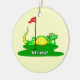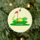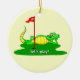 Alligator on 19th green cartoon saying let's play! Funny golf Christmas ornaments,shirts, tshirts and gifts for golfers who play golf courses with alligators. Humourous golf apparel for golfers playing golf in Florida. Fun golf gifts for birthdays, Christmas or any occasion.