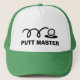 Funny golf hats | Putt Master. Cute sports gift idea for men and women golfers. Black and white golf ball and putting hole design. Golfing humour.