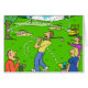Cartoon of golfers with one playing a freak shot that rebounds everywhere and ends up on the green! Gift for a golfer,