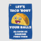 Let's Talk 'Bout Your Balls, as soon as we can find them. Your can customise both lines of text under the taco