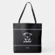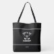 A bold black tote featuring the funny golf saying “Let’s Go Clubbin’,” arranged with crossed clubs, a golf ball, and clean white accent stripes for a modern sports look. The bottom section includes a simple template for adding a monogram, name, or short text, and the design repeats on the back for a polished finish.