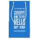 Celebrate the retirement of a soon-to-be former coworker with this funny wine gift bag, which features the sentiment, "Goodbye Nine to Five Hello to Happy Hour" in a white, grunge style font, with an apple martini cleverly standing in for the "Y" in "Happy" on alternating baby blue and white backgrounds. Reverse shows identical design.