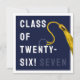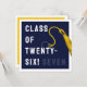 Creative graduation card for Class of '25 graduate featuring navy blue grad cap, gold tassel and funny line. To personalise edit text to add his or her name.