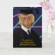 This funny high school or college graduation card features a cute photograph of a graduating monkey all decked out in cap / mortarboard and gown. The hilarious macaque monkey wears a necktie and smiles. Its photo even has a classic yearbook-style background with a retro 80s neon laser look.