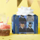 The three monkeys tile across the wrapping paper, alongside your graduate's photo. Use the template to add a short, custom "congratulations" message in yellow.