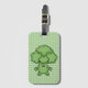 Cute green cartoon broccoli with an adorable happy face. The background is a green and white gingham pattern.