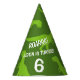 Funny green dinosaur theme Birthday party hats for kids. Fun prehistoric animal design for children. Personalise with name and age. Green Tyrannosaurus rex silhouette print.